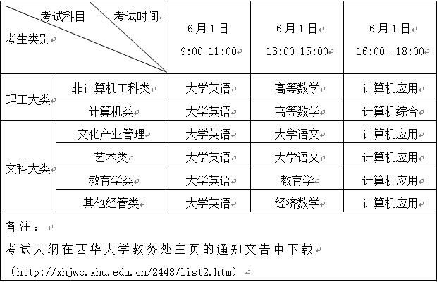 5.专升本考试科目及时间安排