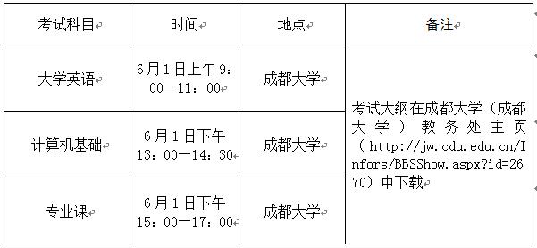 所有通过学院审核而被推荐“专升本”的学生,必须参加成都大学组织的“专升本”选拔考试。具体安排如下: