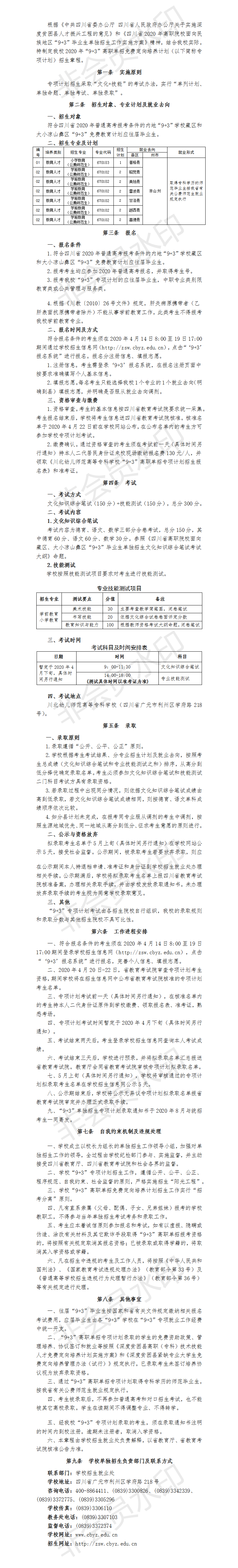 四川广安职业技术学院2020年“9+3”高职单招免费定向培养计划招生章程