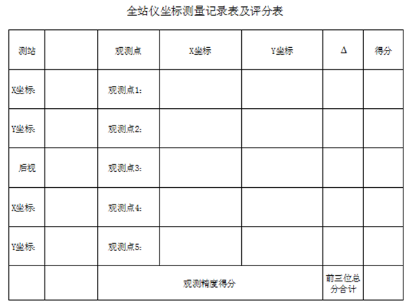 2.考试组织:采用现场实际操作形式,考生独立完成所有考核内容。考场地面设置测站对中标志、后视点棱镜、测站点棱镜。